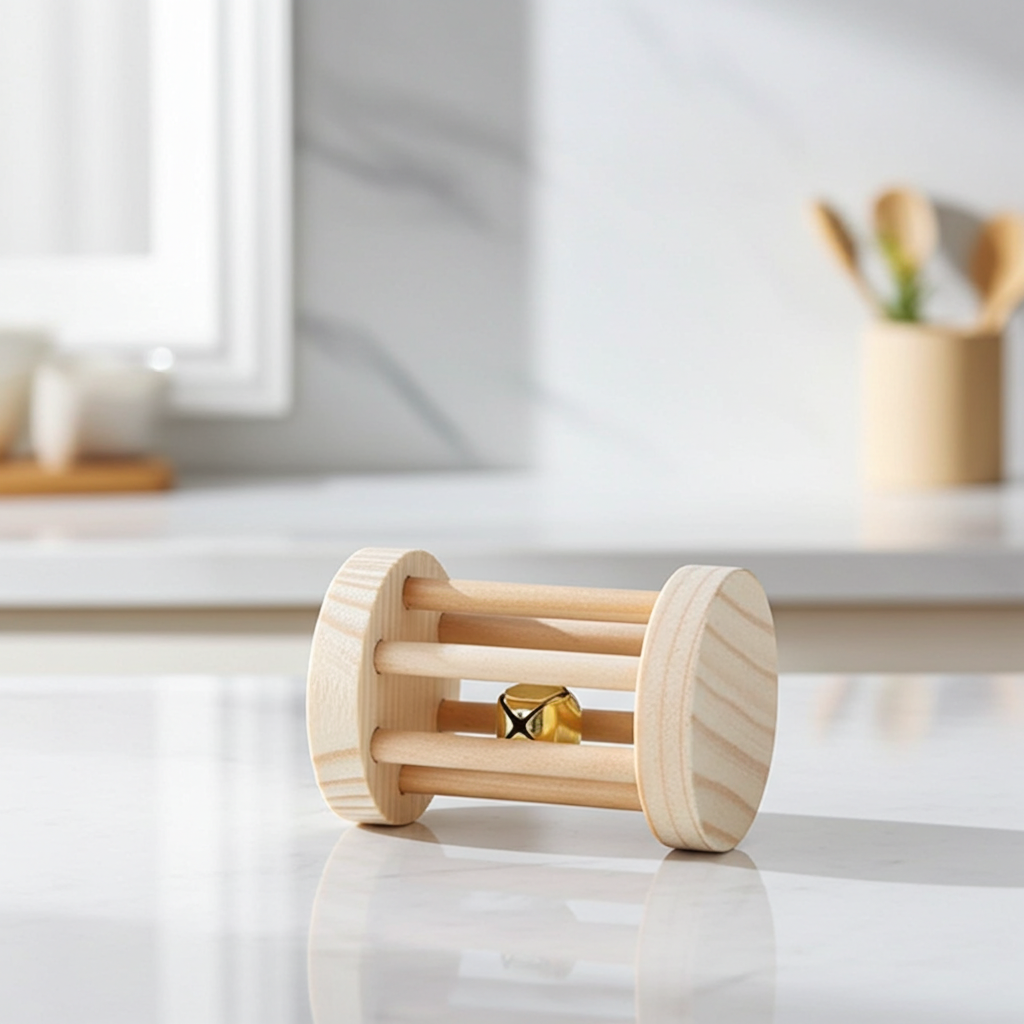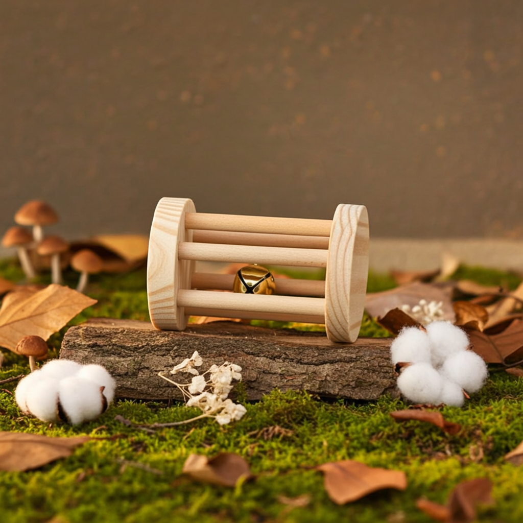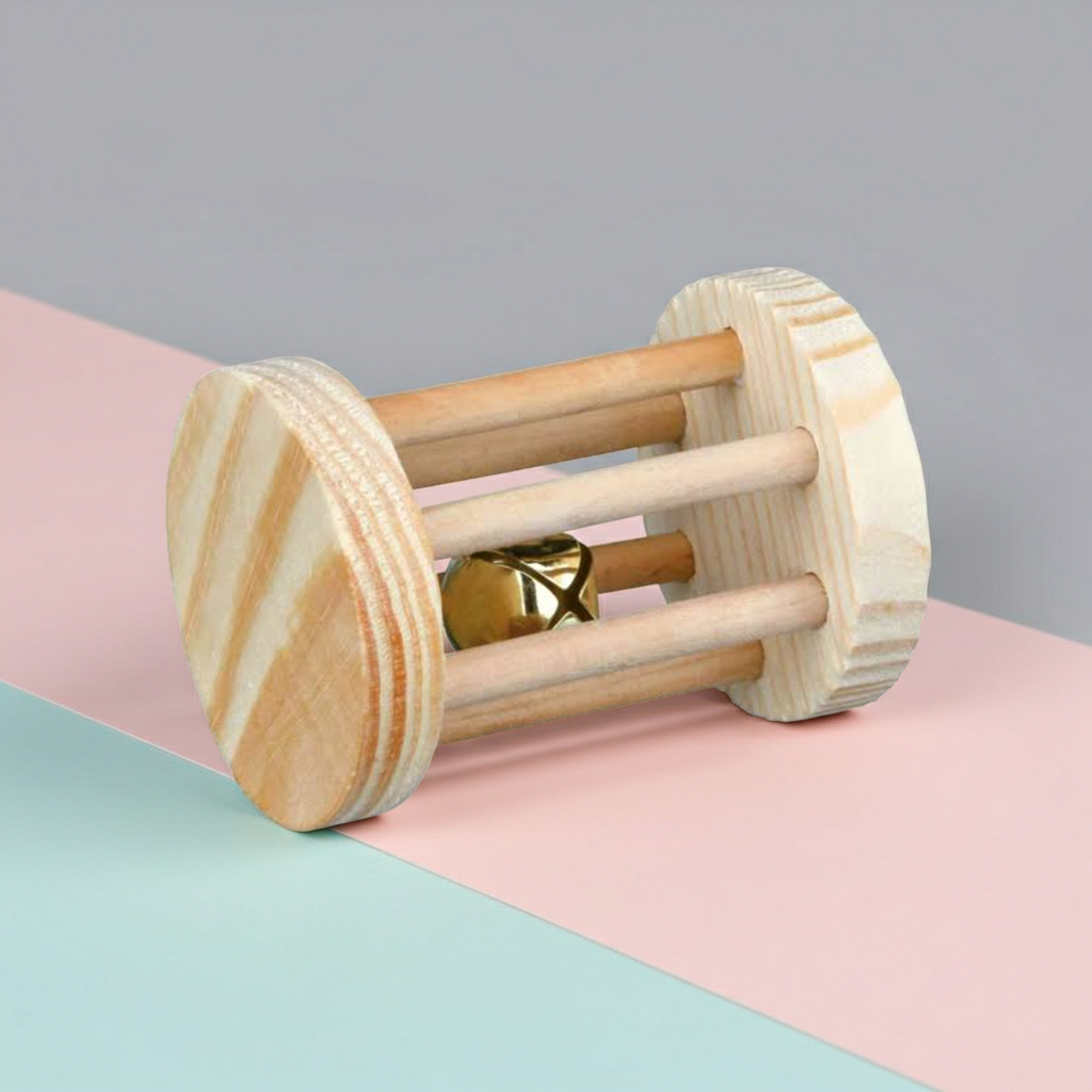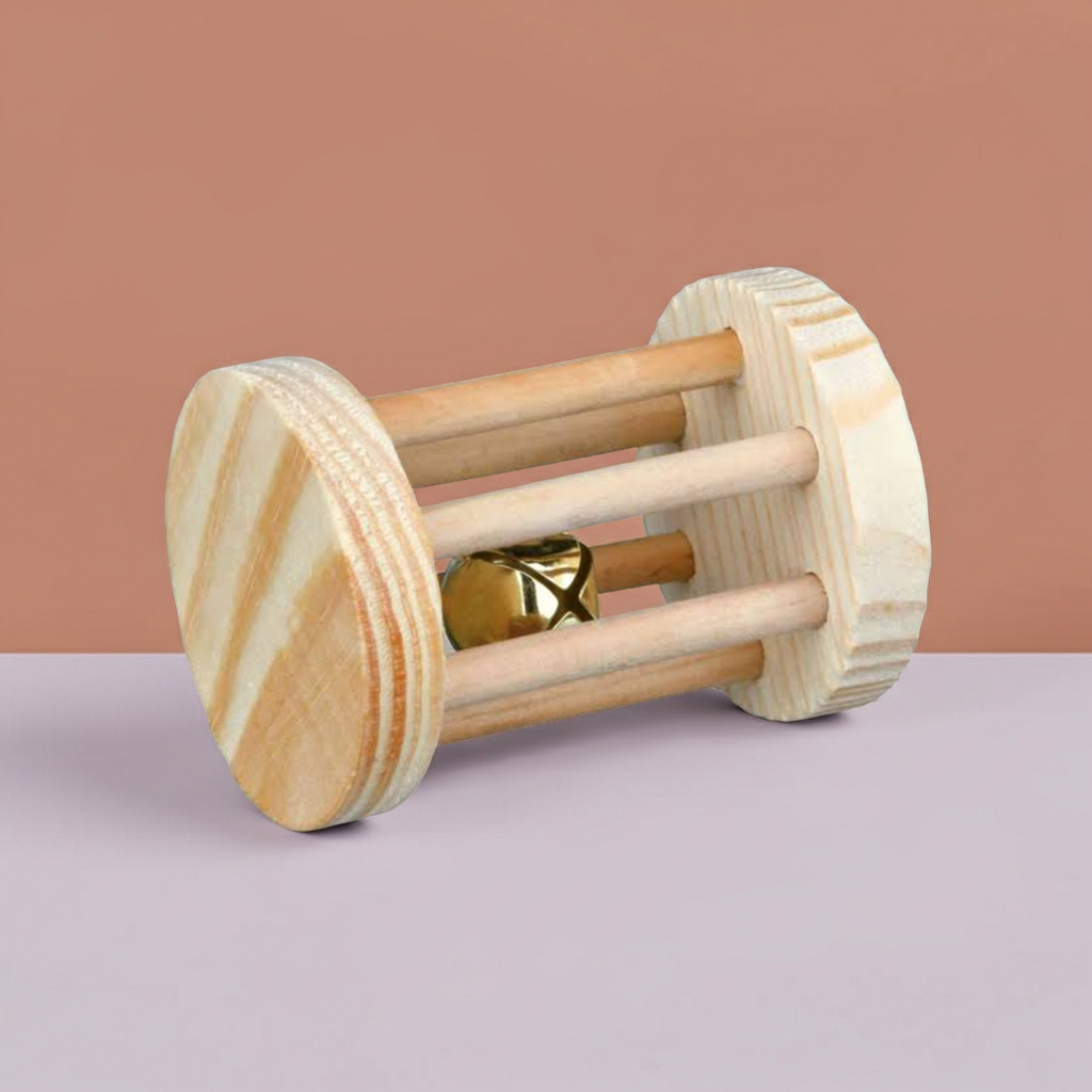 Zabawka drewniana rolka walec dla jeża z dzwoneczkiem 3,5cm x 5cm